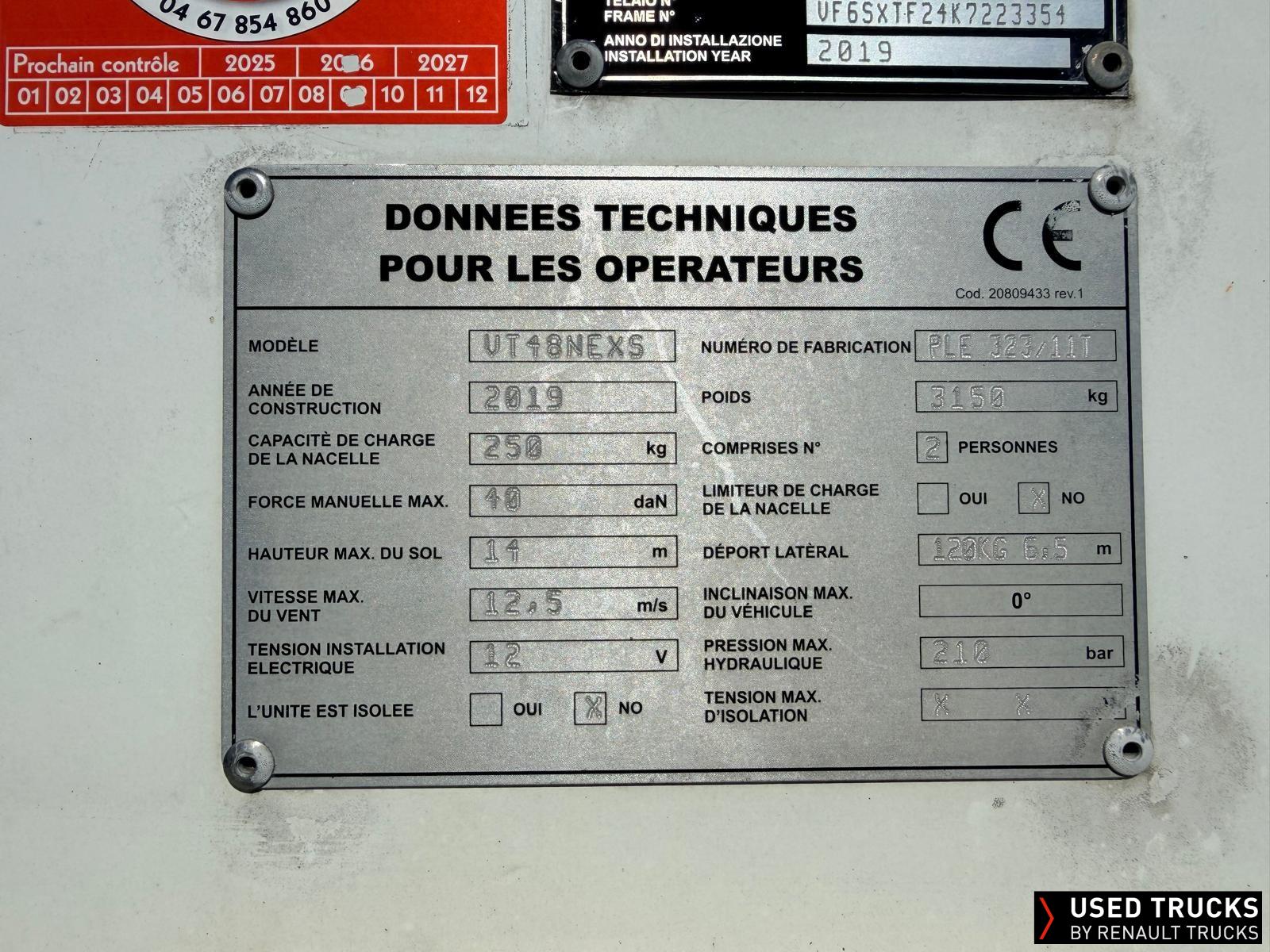 3 PLACES / CLIMATISATION / RADIO CD BLUETOOTH / MODE ECO / VITRES ELECTRIQUES / GYROPHARES / TRIFLASH / NACELLE KLUBB UT48NEXS / DEPORT LATERAL 120 kg à 6,5 m / HAUTEUR DE TRAVAIL 16M / CAPACITE DE CHARGE 250KG / 4 STABILISATEURS /